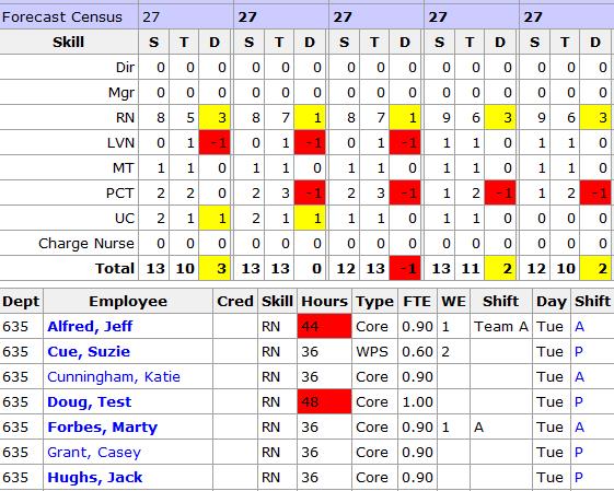 The Daily Roster displays overtime by highlighting the overtime shift code in red. This does not necessarily represent the true overtime picture for a department. Since only the extra day displays in red, an employee can be in overtime without the overtime