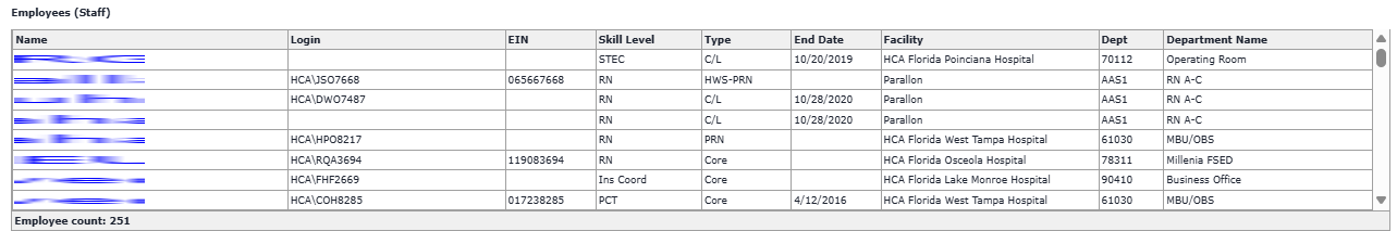 In Facility Scheduler you can search for any employee who has a profile in the system. Search results may be in text or link format. If you manage an employee, their name will appear as a link. Click the link to view the employee's profile. Access to profile information is determined by your role and supervisory relationship with the employee.