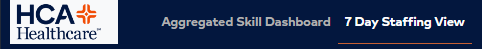 A new dashboard, the 7-Day Staffing View, allows staffers and management to view metrics, staffing levels, and premium labor usage for a selected seven-day period. The 7-Day Staffing View is accessed from the navigation bar in the Aggregated Skills Dashboard (Dashboards > Staffing Dashboard).